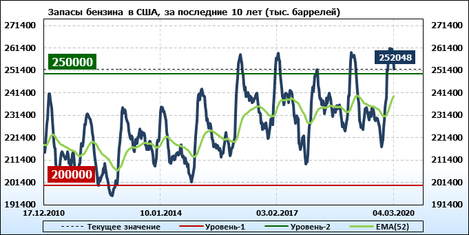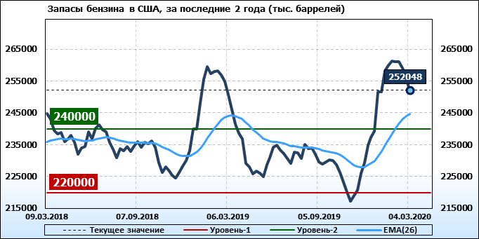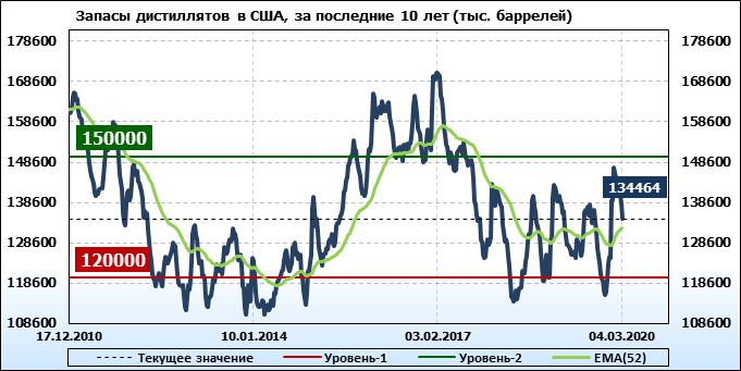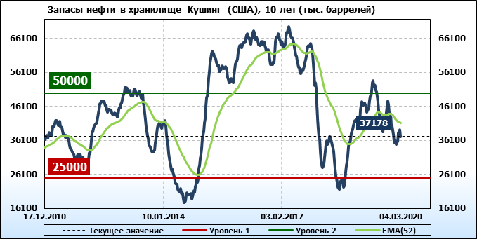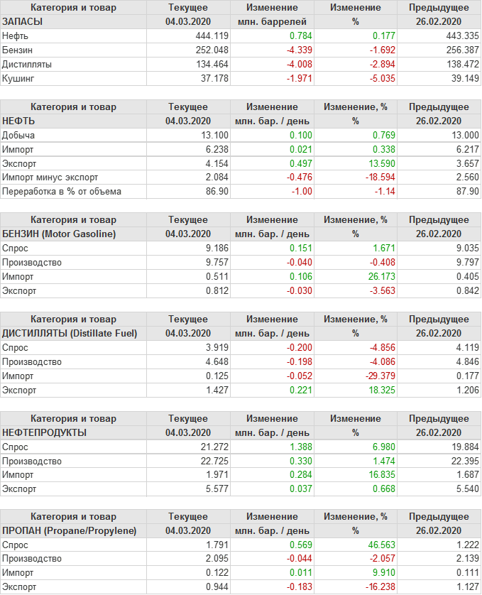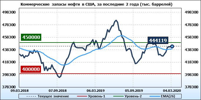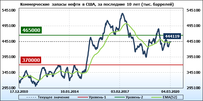 EIA. Коммерческие запасы нефти в США на 04 марта 2020