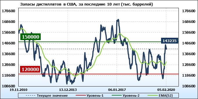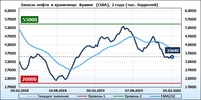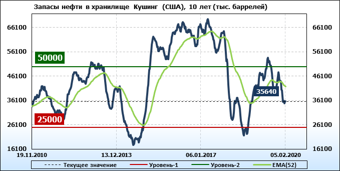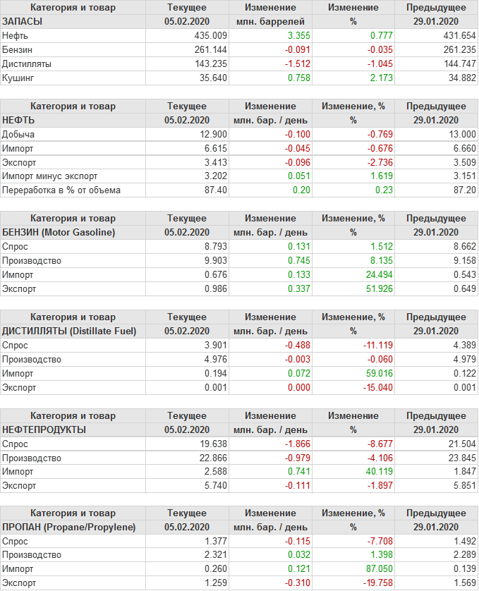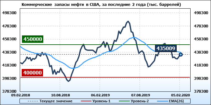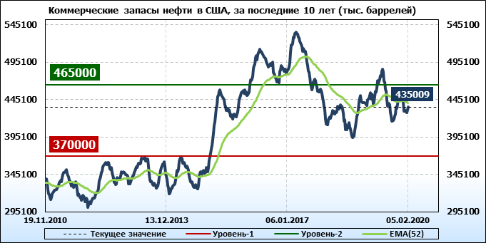 EIA. Коммерческие запасы нефти в США на 05 февраля 2020