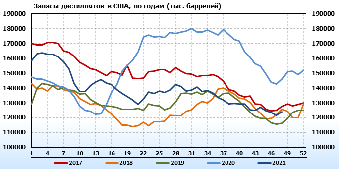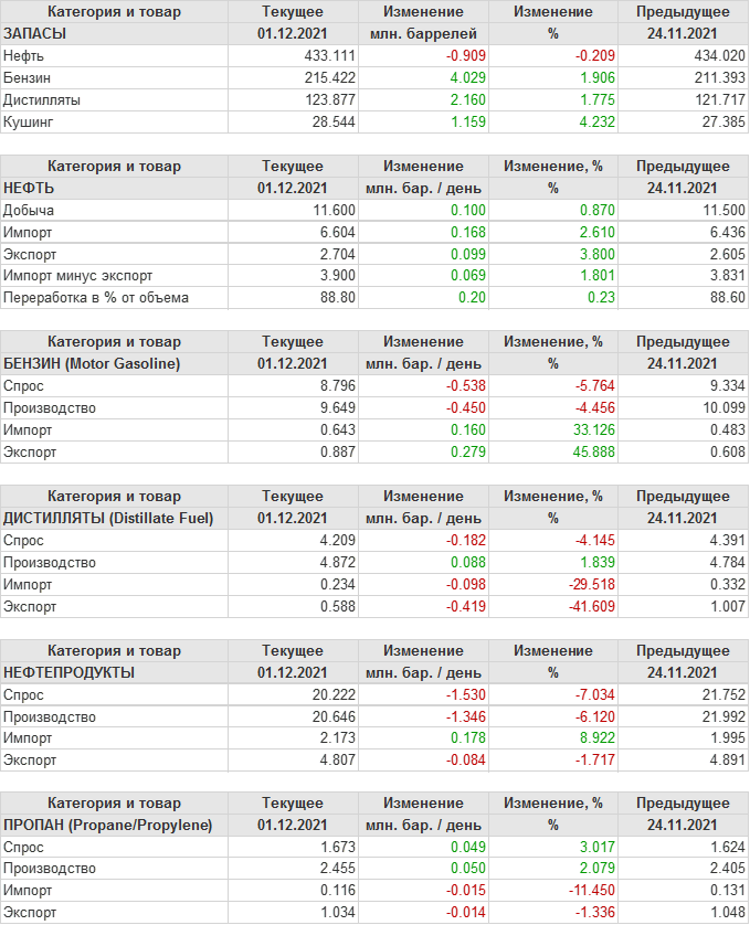 API. Изменение запасов нефти в США на 30 ноября 2021