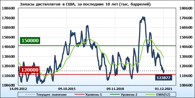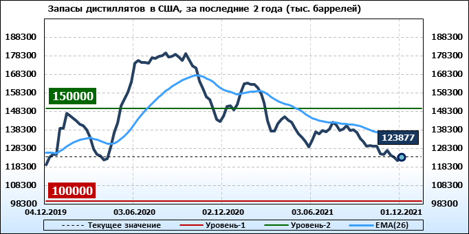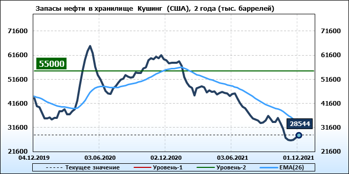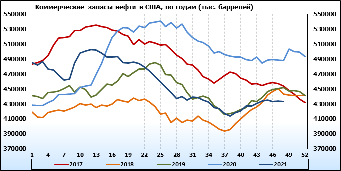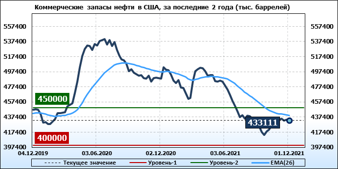 EIA. Коммерческие запасы нефти в США на 1 декабря 2021