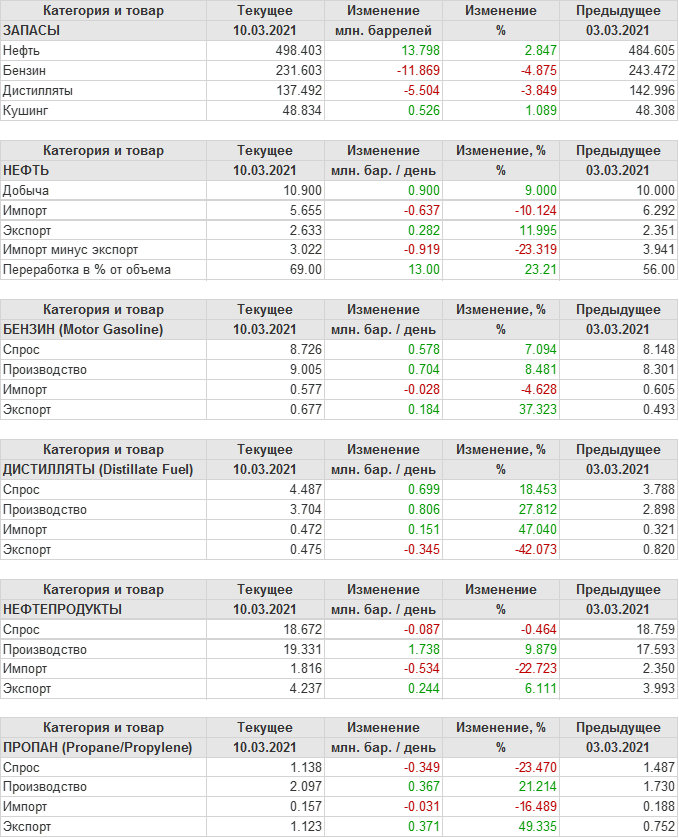 API. Изменение запасов нефти в США на 9 марта 2021