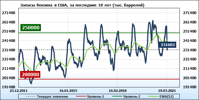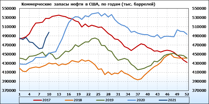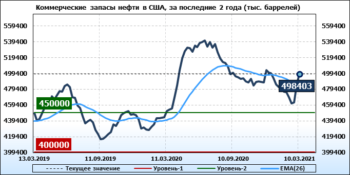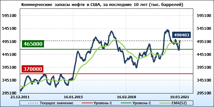 EIA. Коммерческие запасы нефти в США на 10 марта 2021