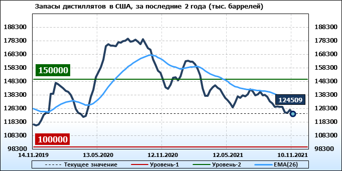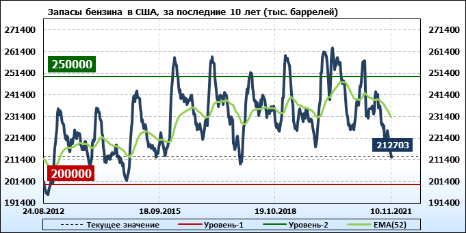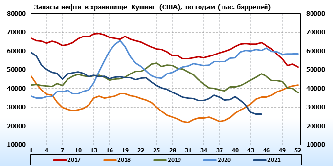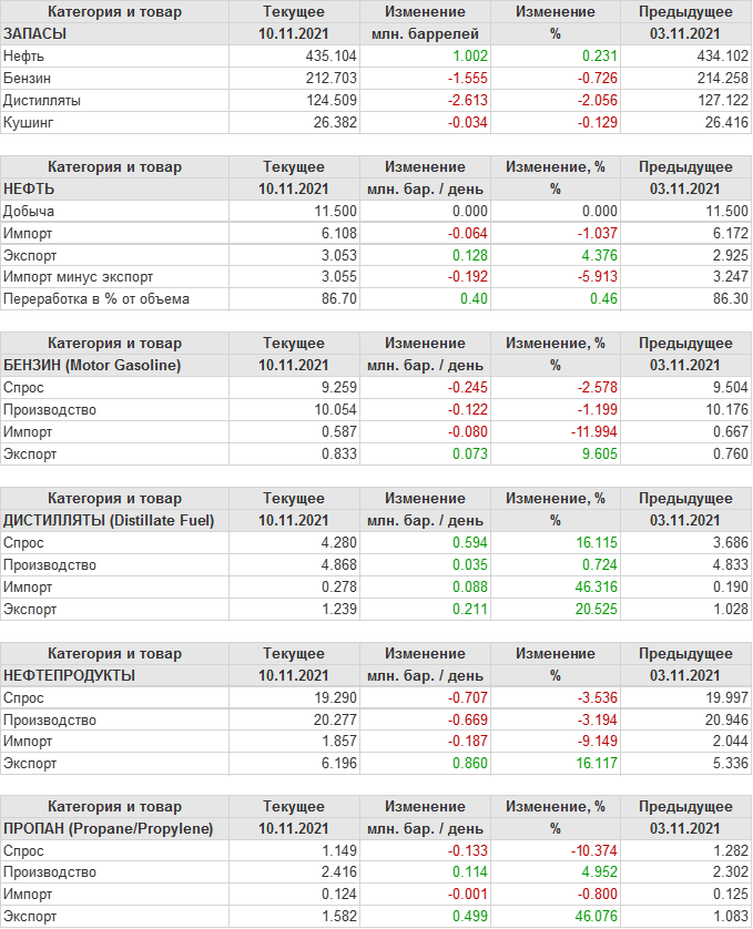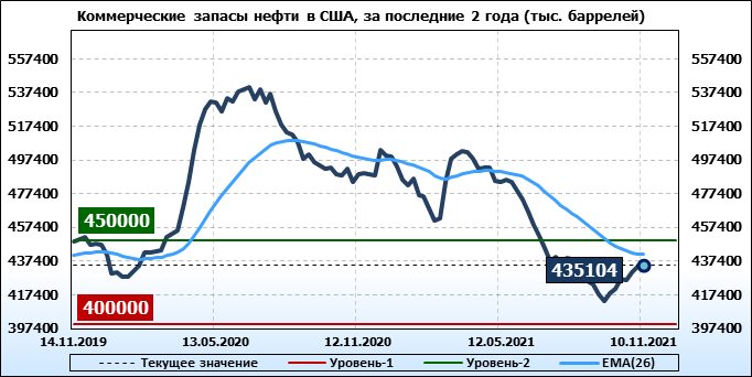 EIA. Коммерческие запасы нефти в США на 10 ноября 2021