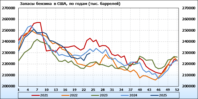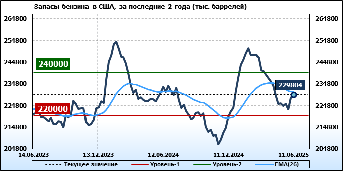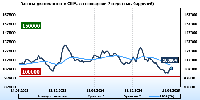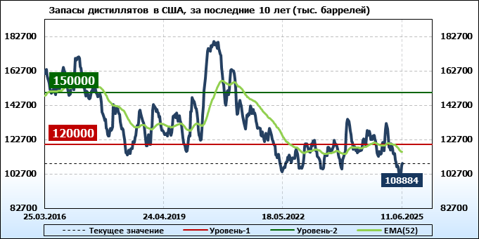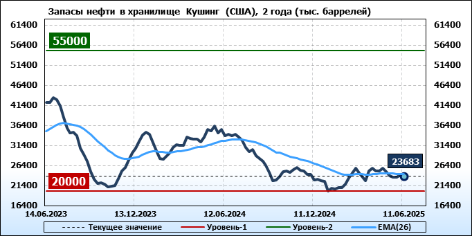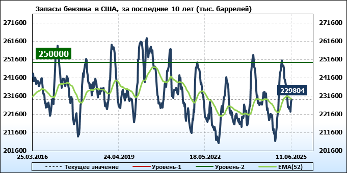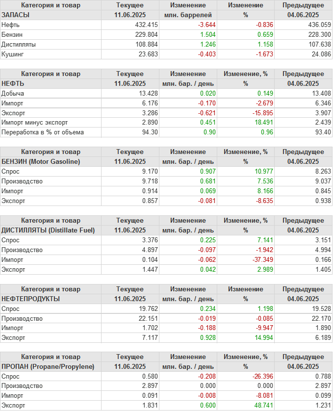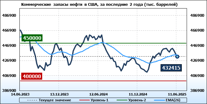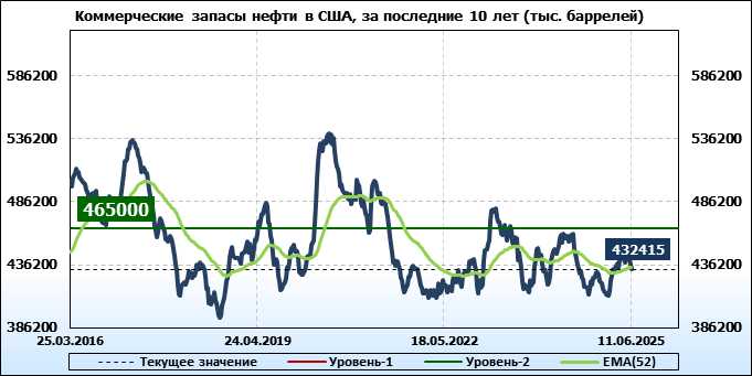 EIA. Коммерческие запасы нефти в США на 11 июня 2025