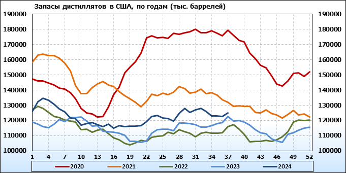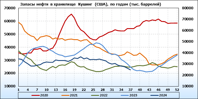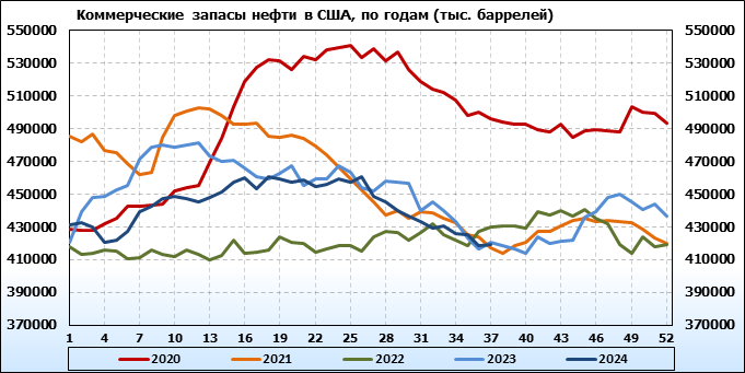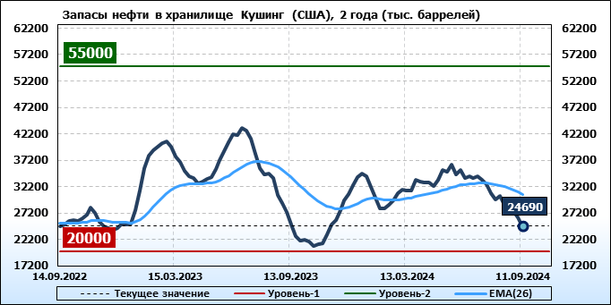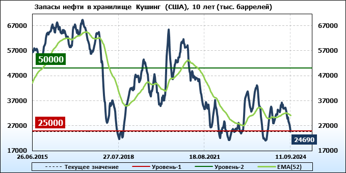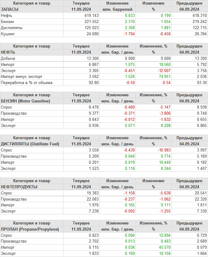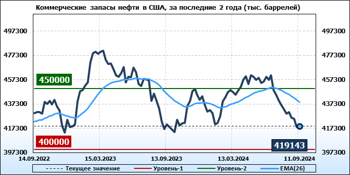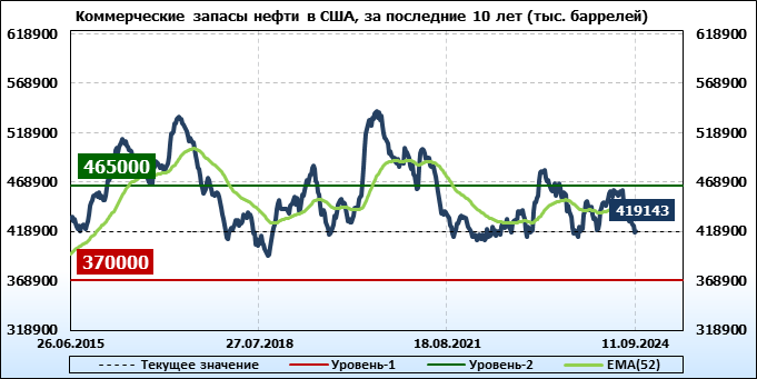 EIA. Коммерческие запасы нефти в США на 11 сентября 2024