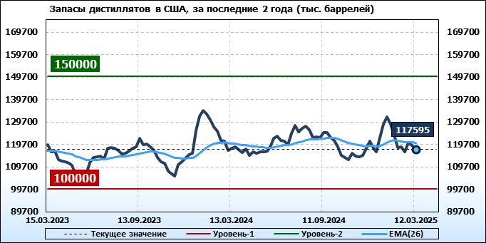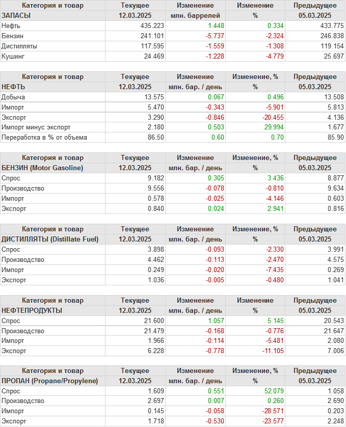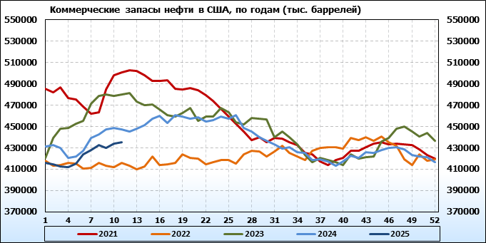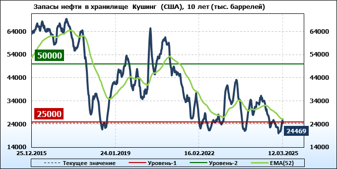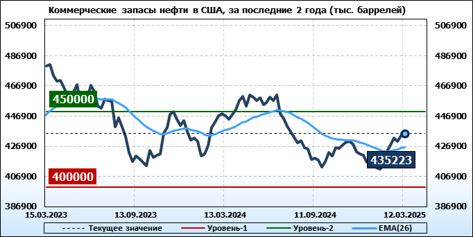 EIA. Коммерческие запасы нефти в США на 12 марта 2025
