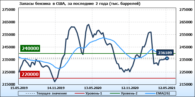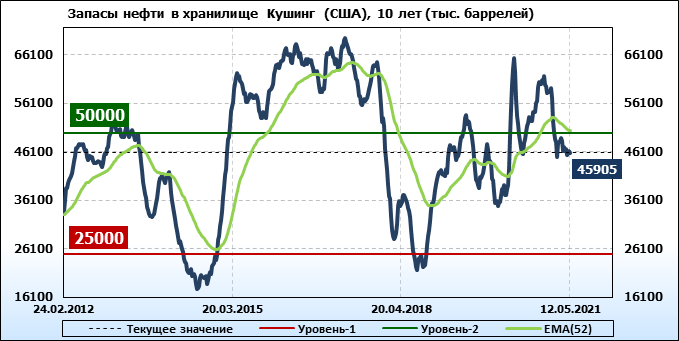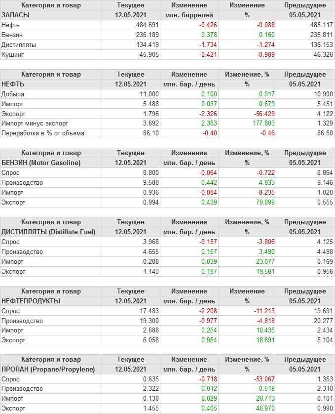 EIA. Коммерческие запасы нефти в США на 12 мая 2021