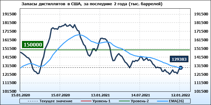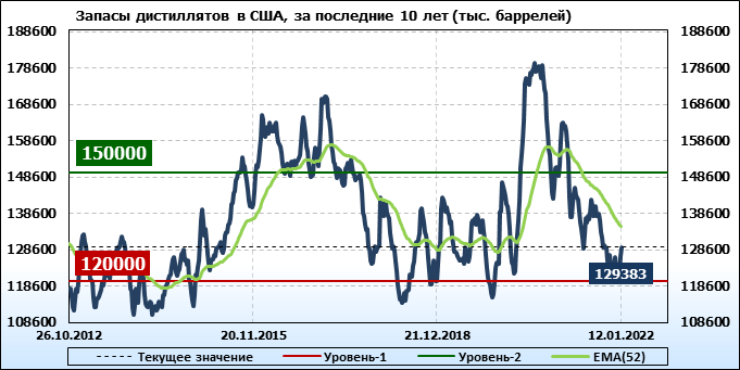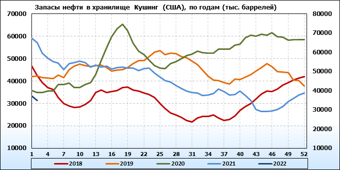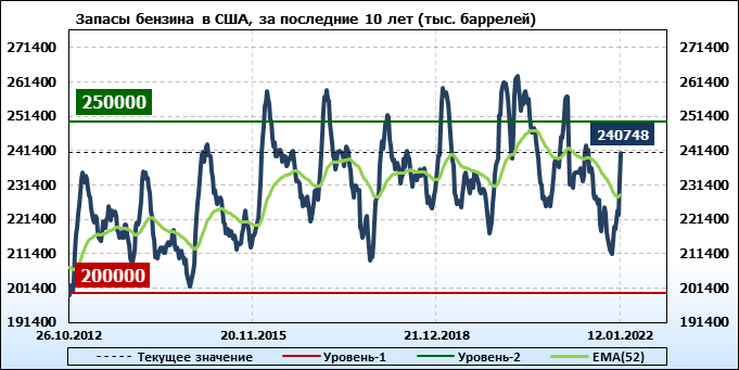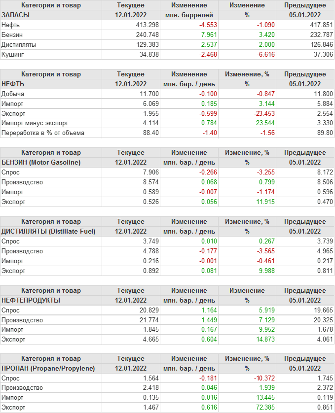 API. Изменение запасов нефти в США на 11 января 2022