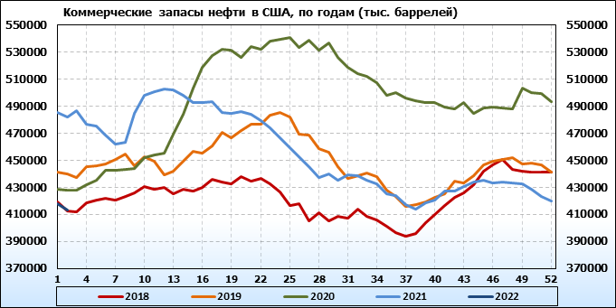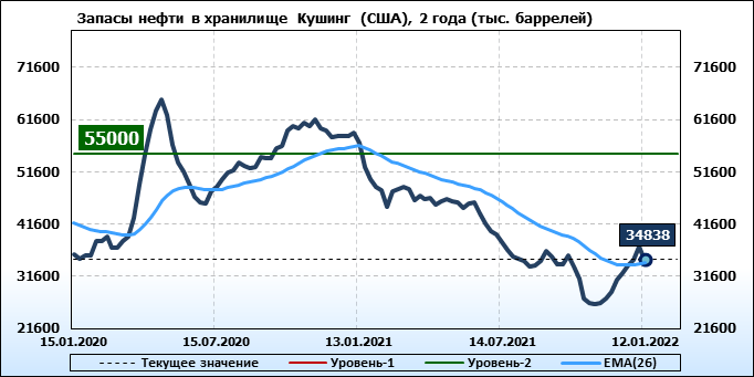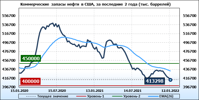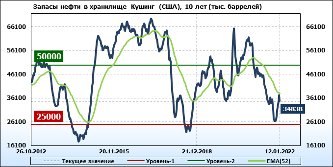 EIA. Коммерческие запасы нефти в США на 12 января 2022