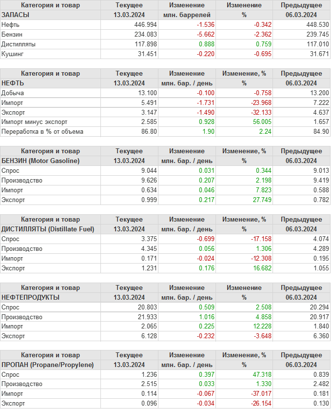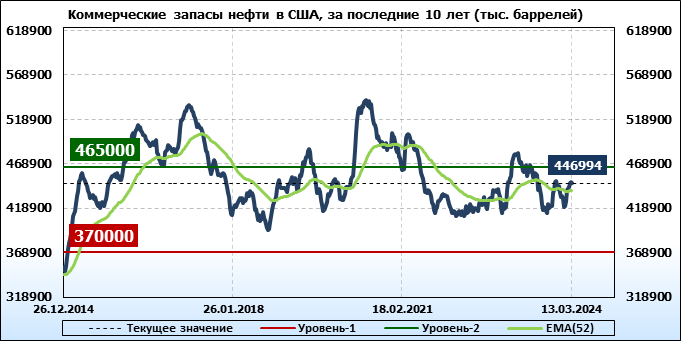 EIA. Коммерческие запасы нефти в США на 13 марта 2024
