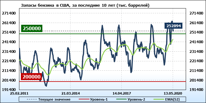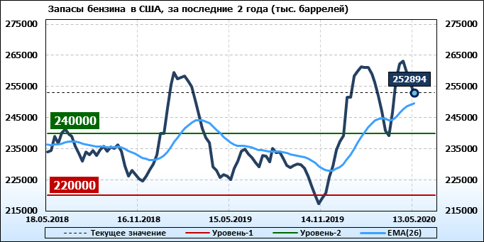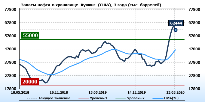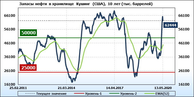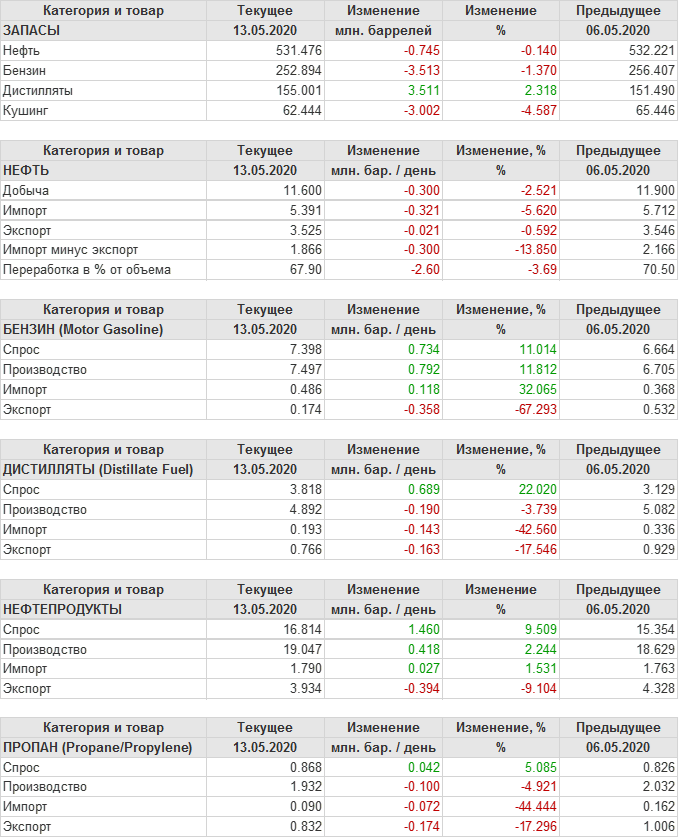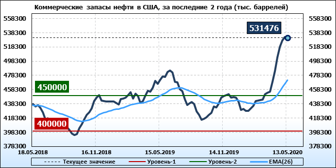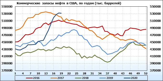 EIA. Коммерческие запасы нефти в США на 13 мая 2020