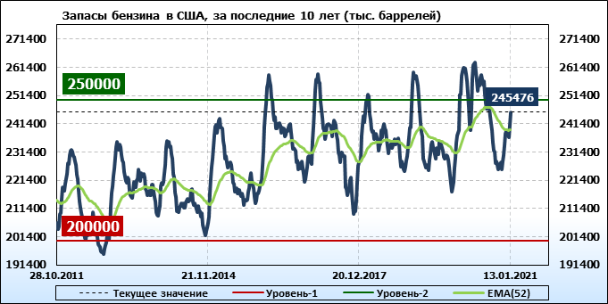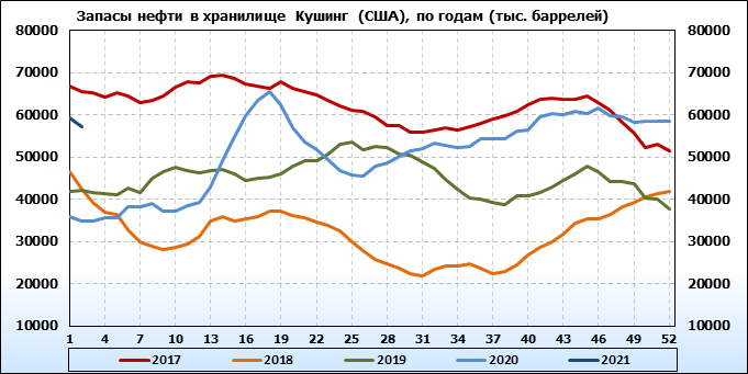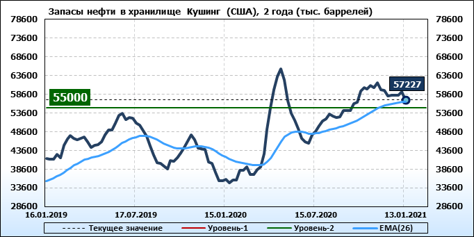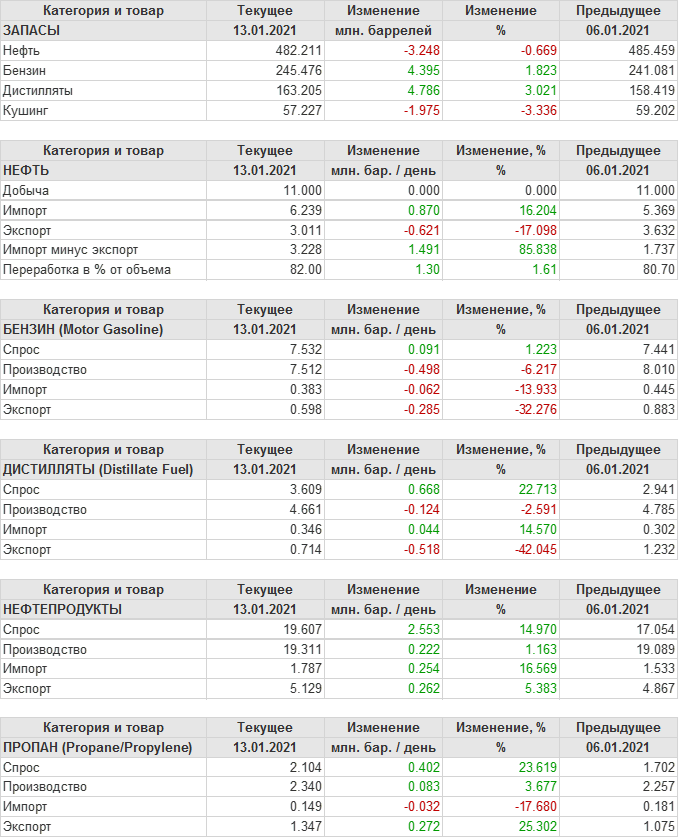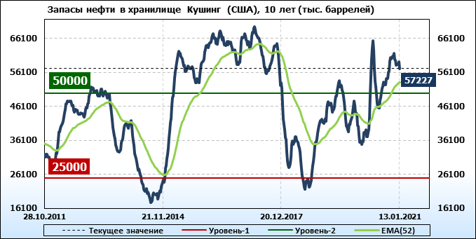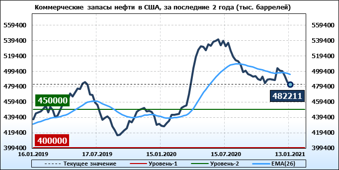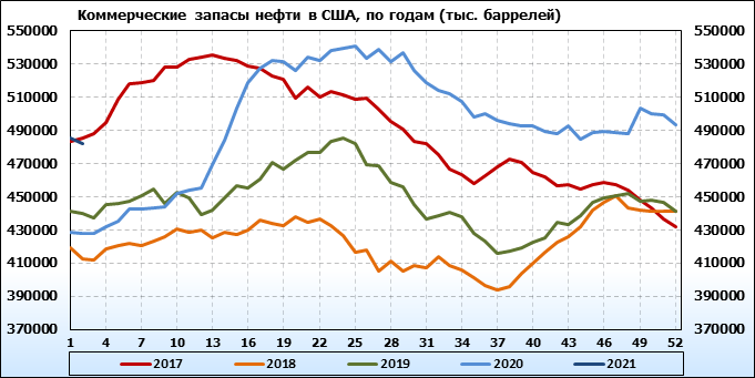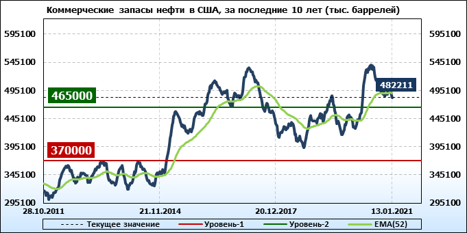 EIA. Коммерческие запасы нефти в США на 13 января 2021