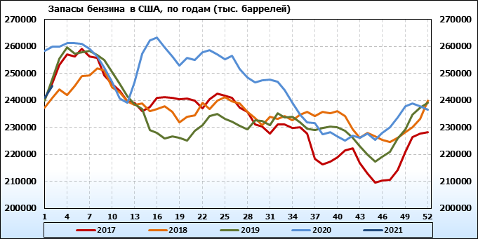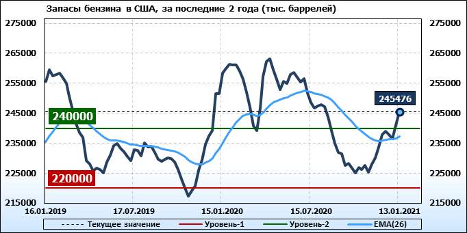 Эксперты, опрошенные агентством Bloomberg, ожидали уменьшения запасов нефти на 3000 тыс. баррелей, роста запасов бензина на 2500 тыс. баррелей и повышения запасов дистиллятов на 2000 тыс. баррелей.