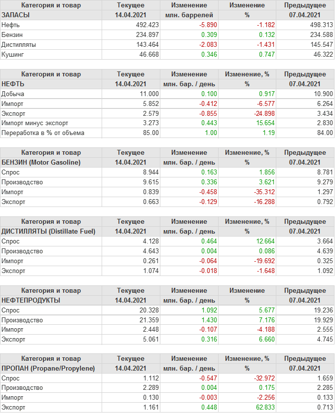 API. Изменение запасов нефти в США на 13 апреля 2021