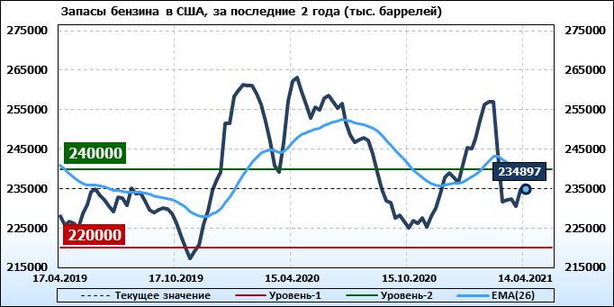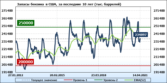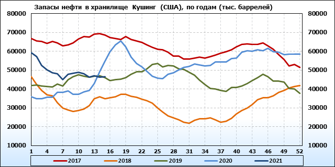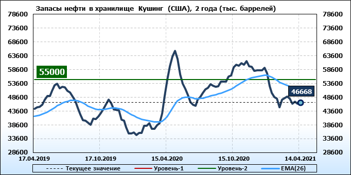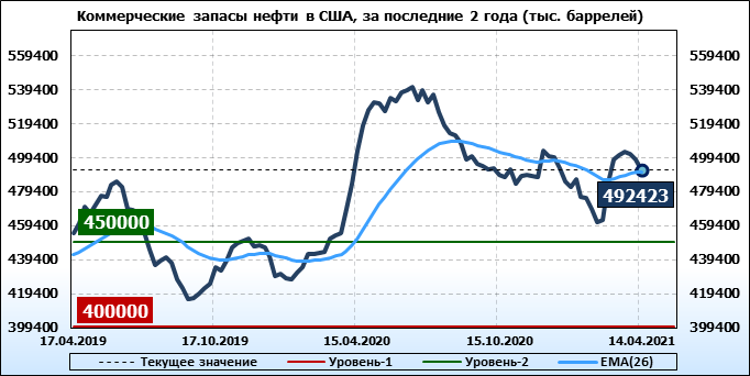 EIA. Коммерческие запасы нефти в США на 14 апреля 2021