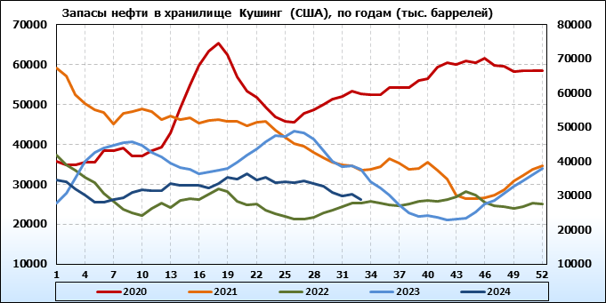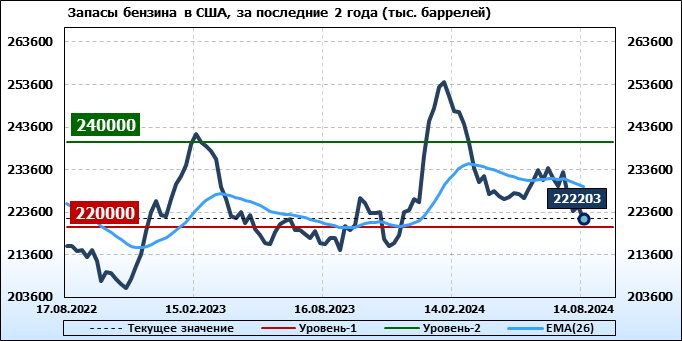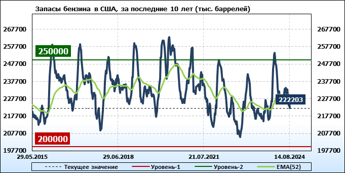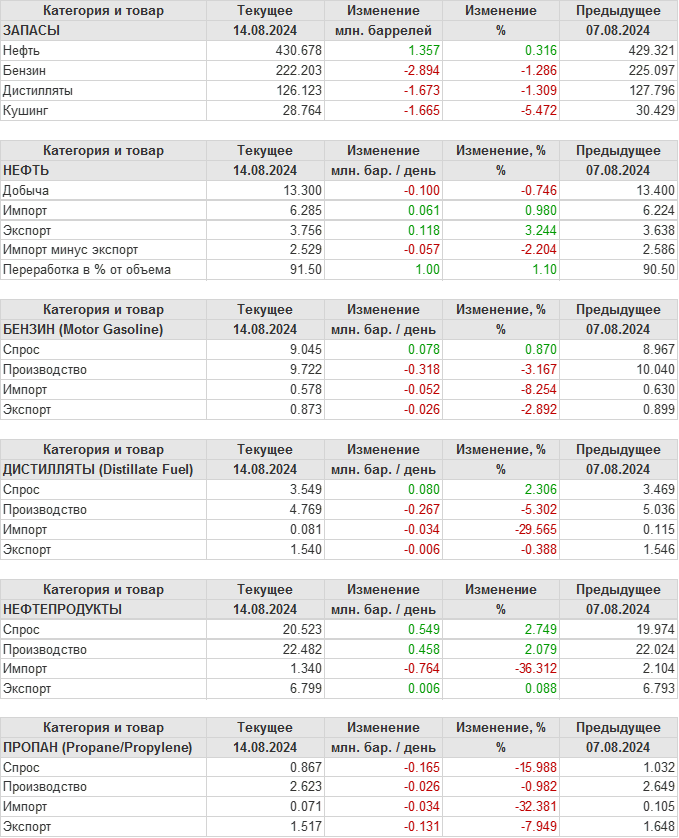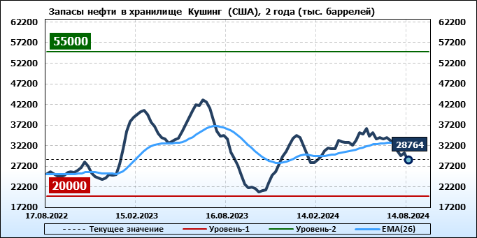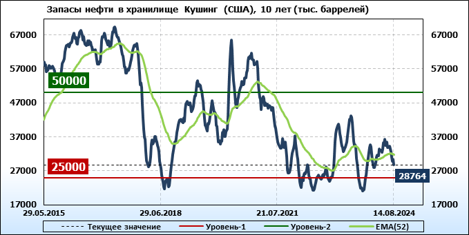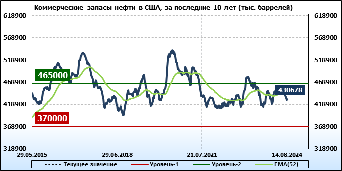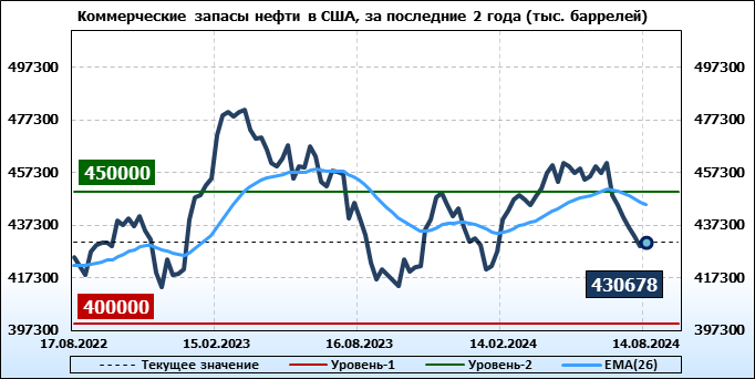 EIA. Коммерческие запасы нефти в США на 14 августа 2024