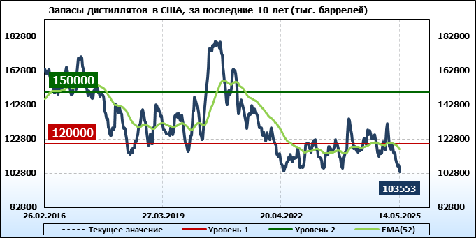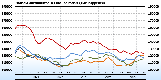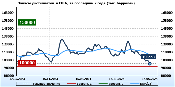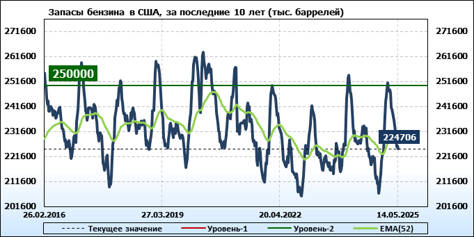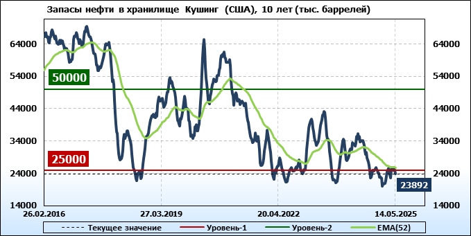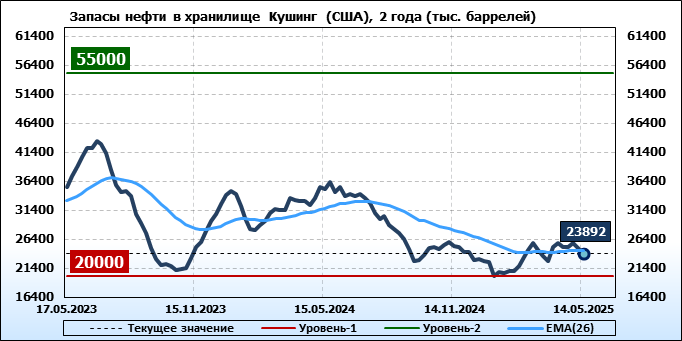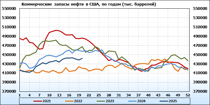 EIA. Коммерческие запасы нефти в США на 14 мая 2025