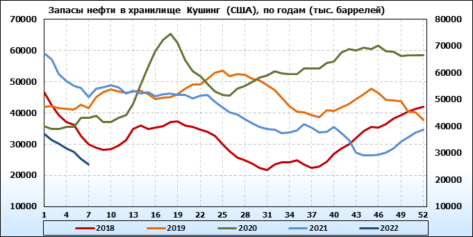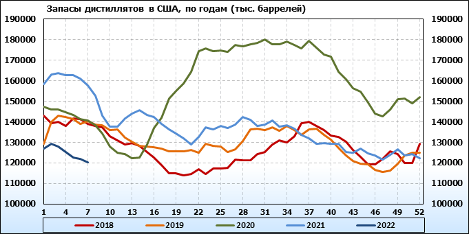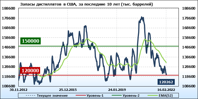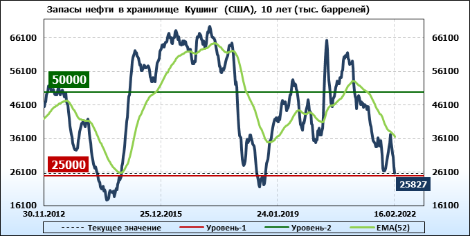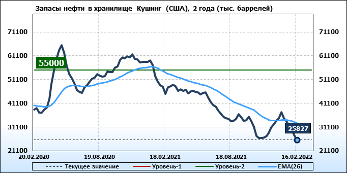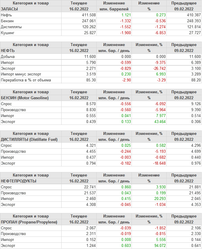API. Изменение запасов нефти в США на 15 февраля 2022