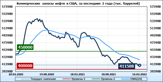 EIA. Коммерческие запасы нефти в США на 16 февраля 2022