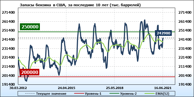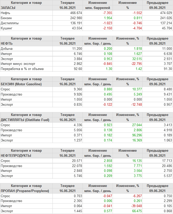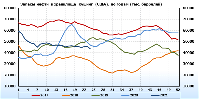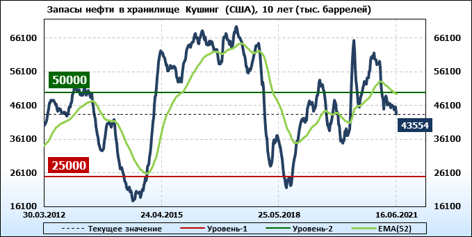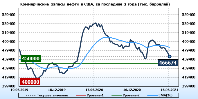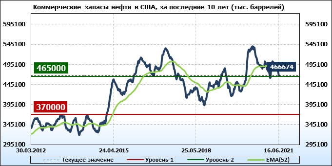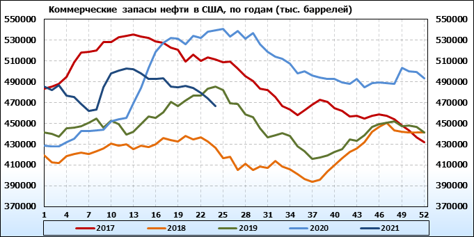 EIA. Коммерческие запасы нефти в США на 16 июня 2021