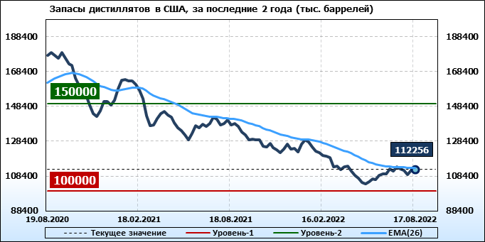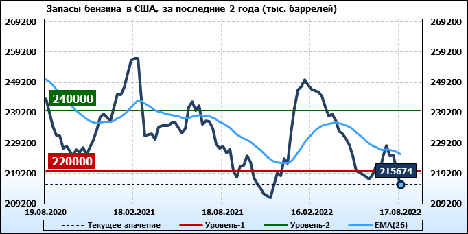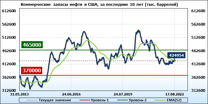 EIA. Коммерческие запасы нефти в США на 17 августа 2022
