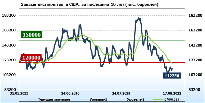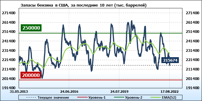 API. Изменение запасов нефти в США на 16 августа 2022