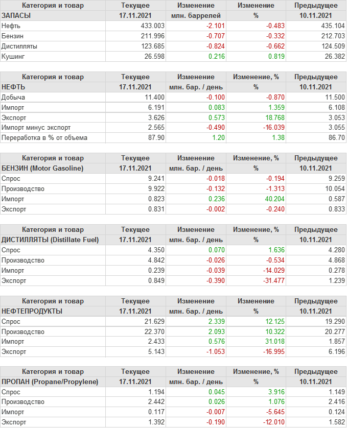 API. Изменение запасов нефти в США на 16 ноября 2021