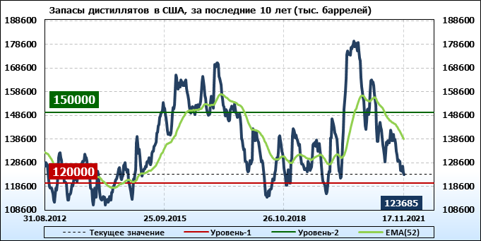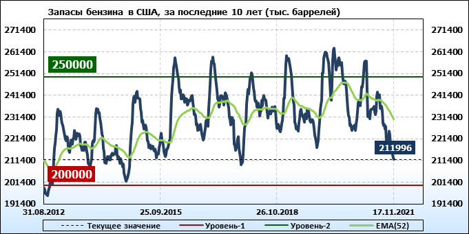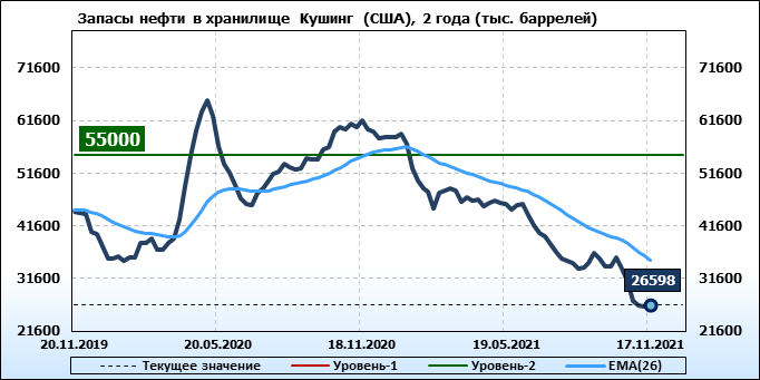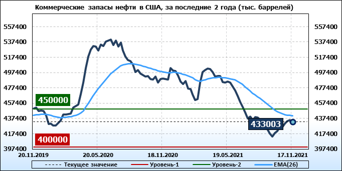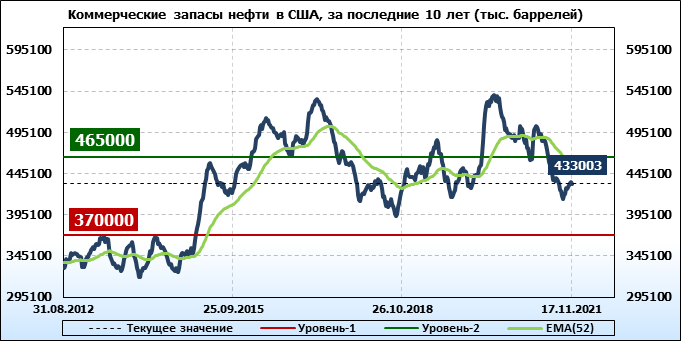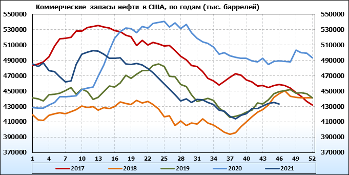 EIA. Коммерческие запасы нефти в США на 17 ноября 2021