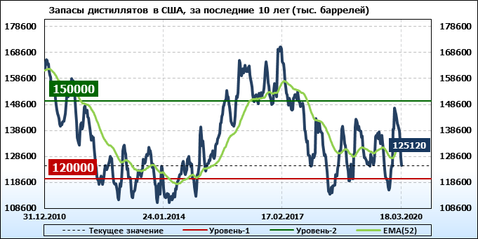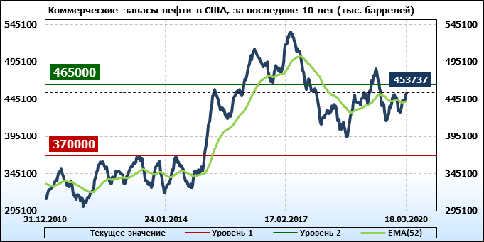 EIA. Коммерческие запасы нефти в США на 18 марта 2020