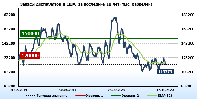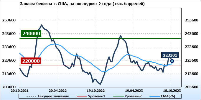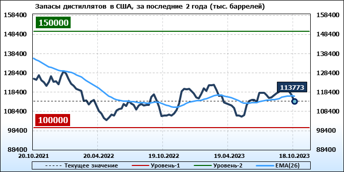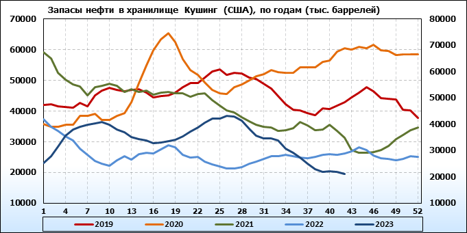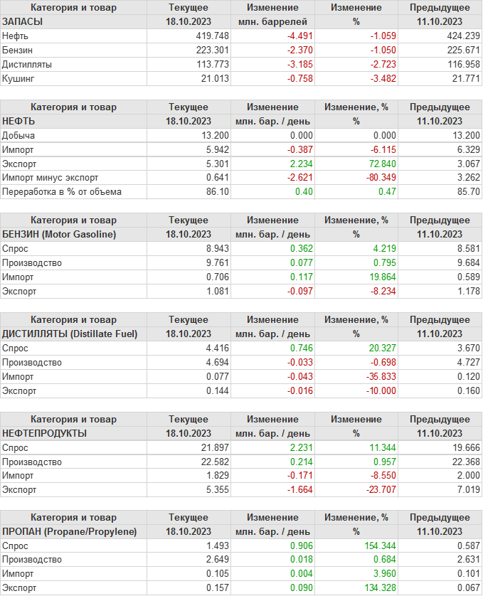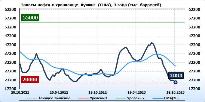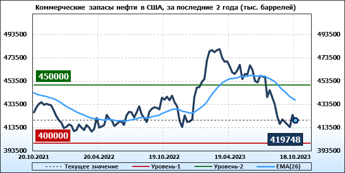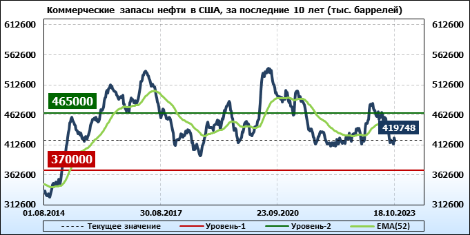 EIA. Коммерческие запасы нефти в США на 18 октября 2023