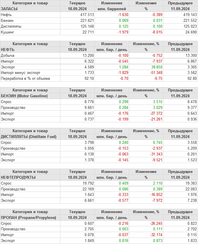 API. Изменение запасов нефти в США на 17 сентября 2024