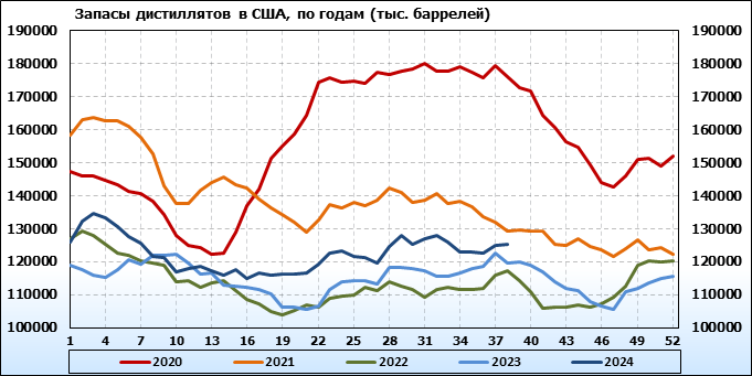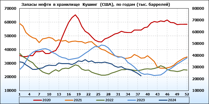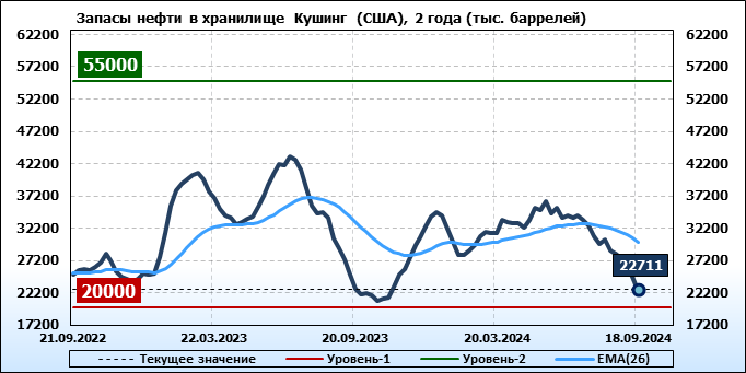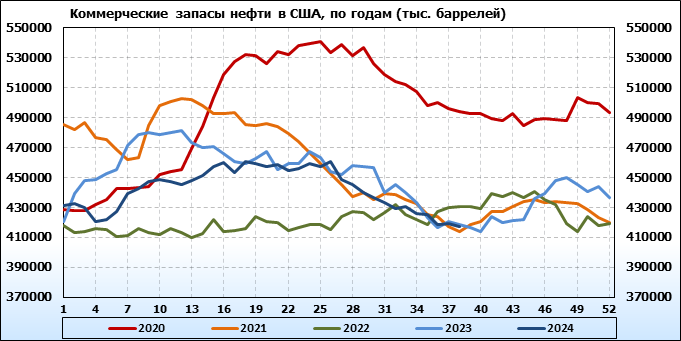 EIA. Коммерческие запасы нефти в США на 18 сентября 2024