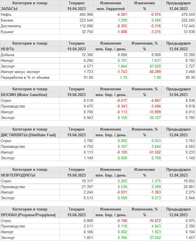 API. Изменение запасов нефти в США на 18 апреля 2023