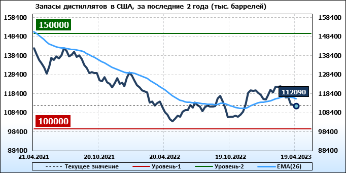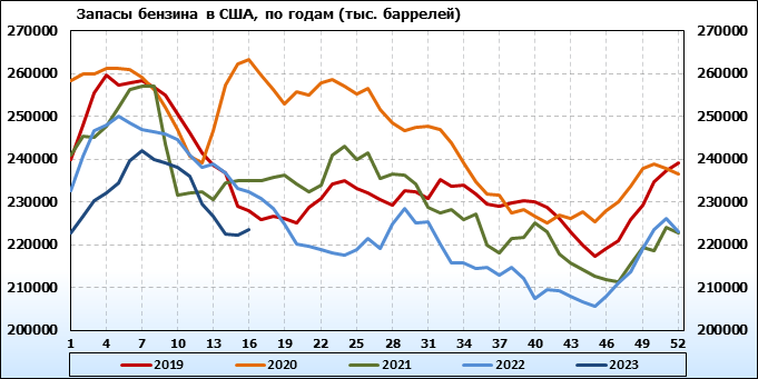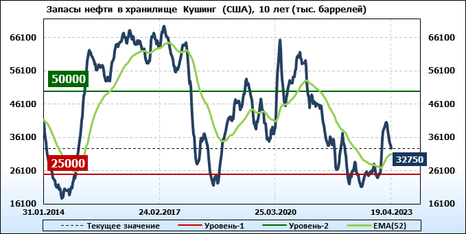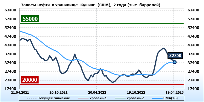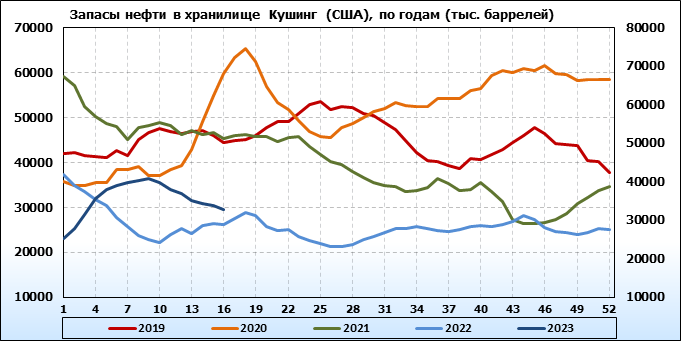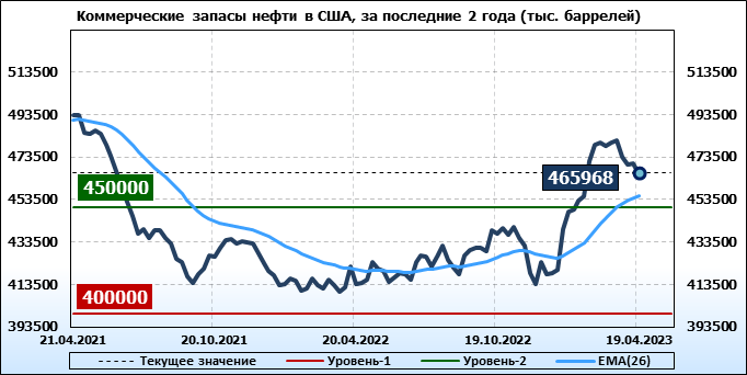EIA. Коммерческие запасы нефти в США на 19 апреля 2023