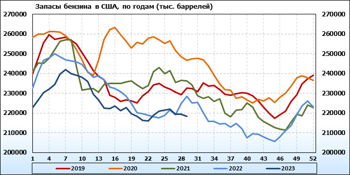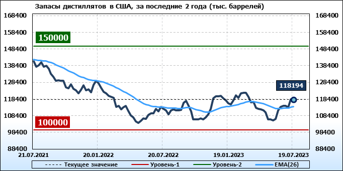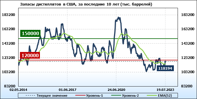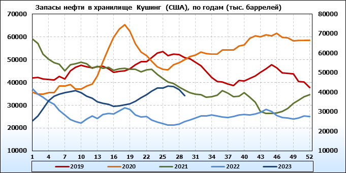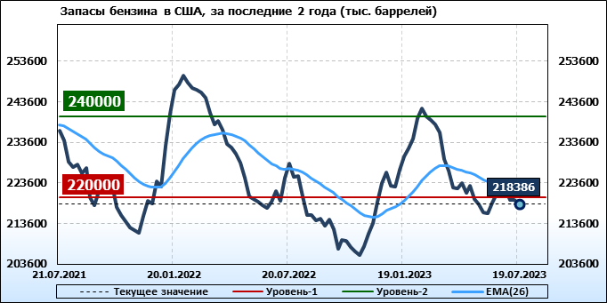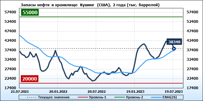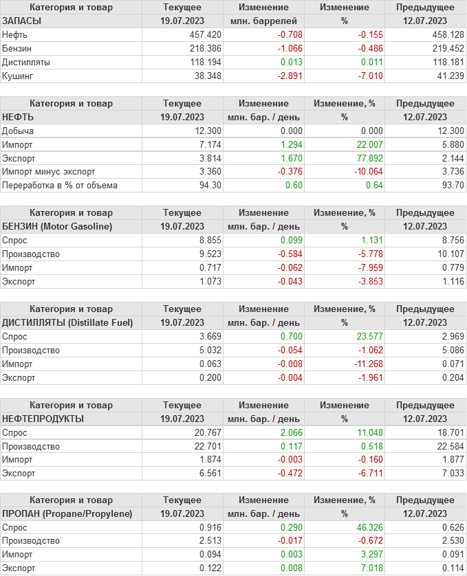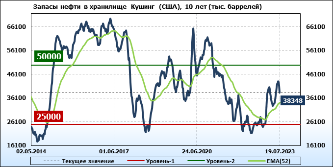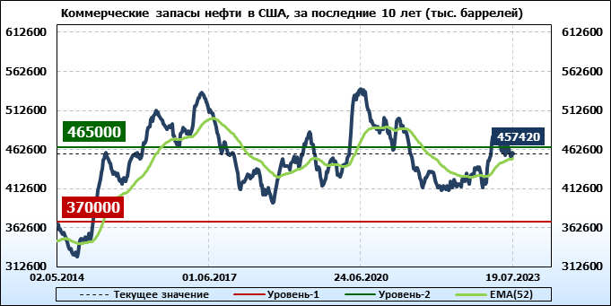 EIA. Коммерческие запасы нефти в США на 19 июля 2023