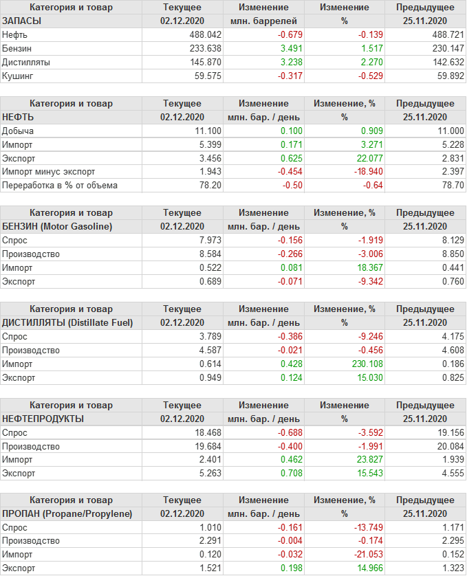 API. Изменение запасов нефти в США на 1 декабря 2020