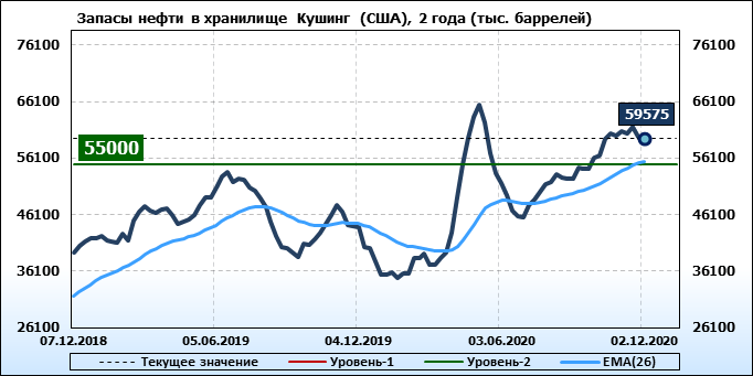 EIA. Коммерческие запасы нефти в США на 2 декабря 2020