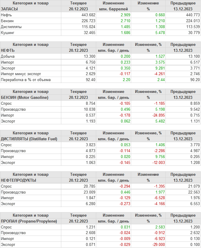 API. Изменение запасов нефти в США на 19 декабря 2023