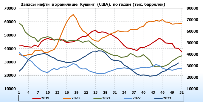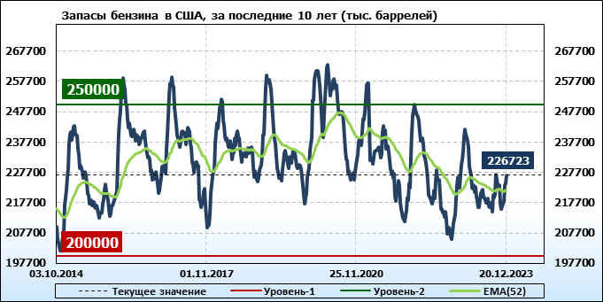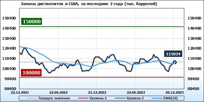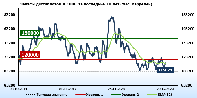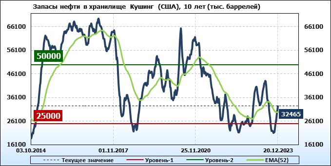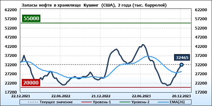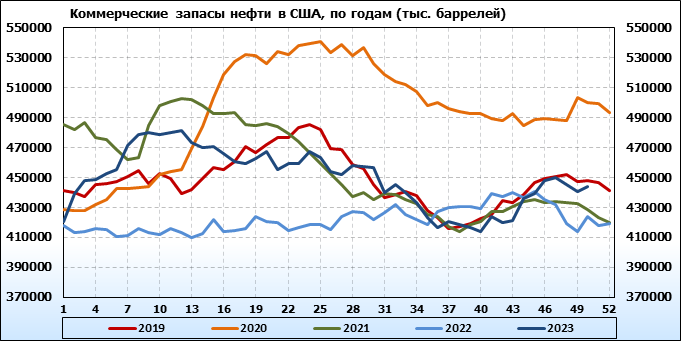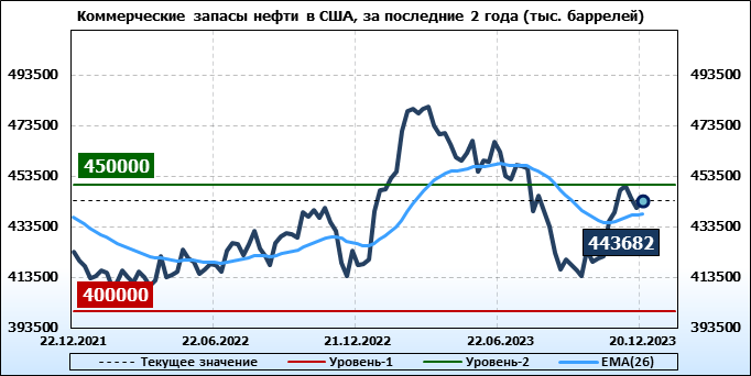 EIA. Коммерческие запасы нефти в США на 20 декабря 2023