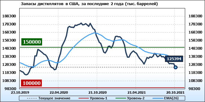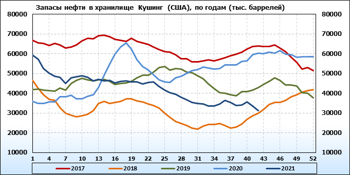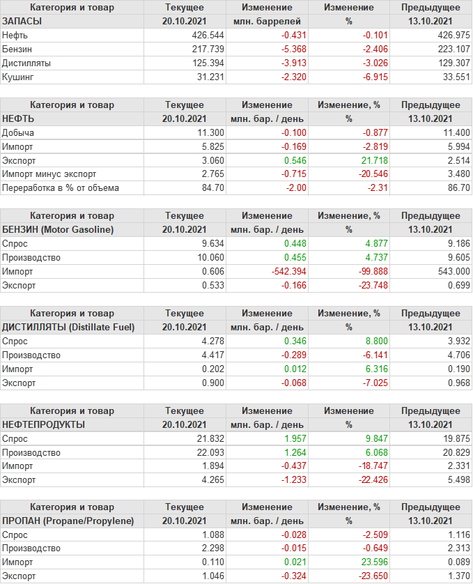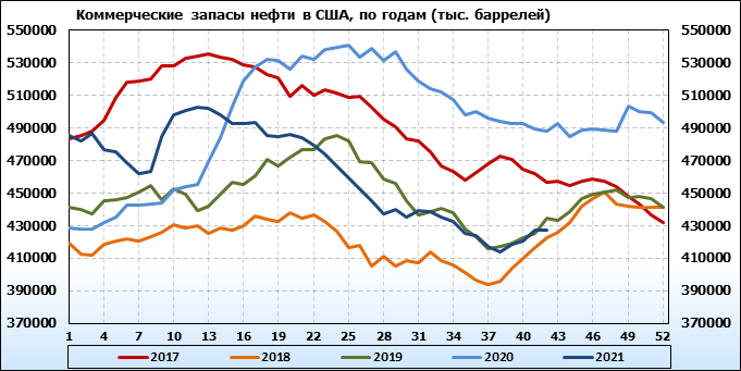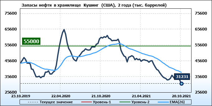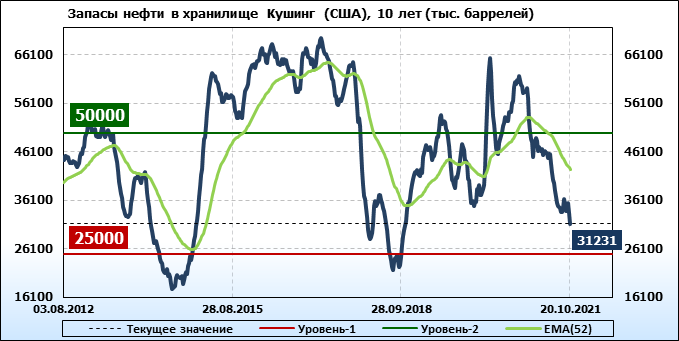 EIA. Коммерческие запасы нефти в США на 20 октября 2021