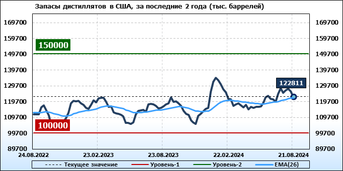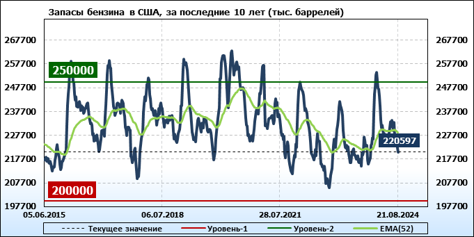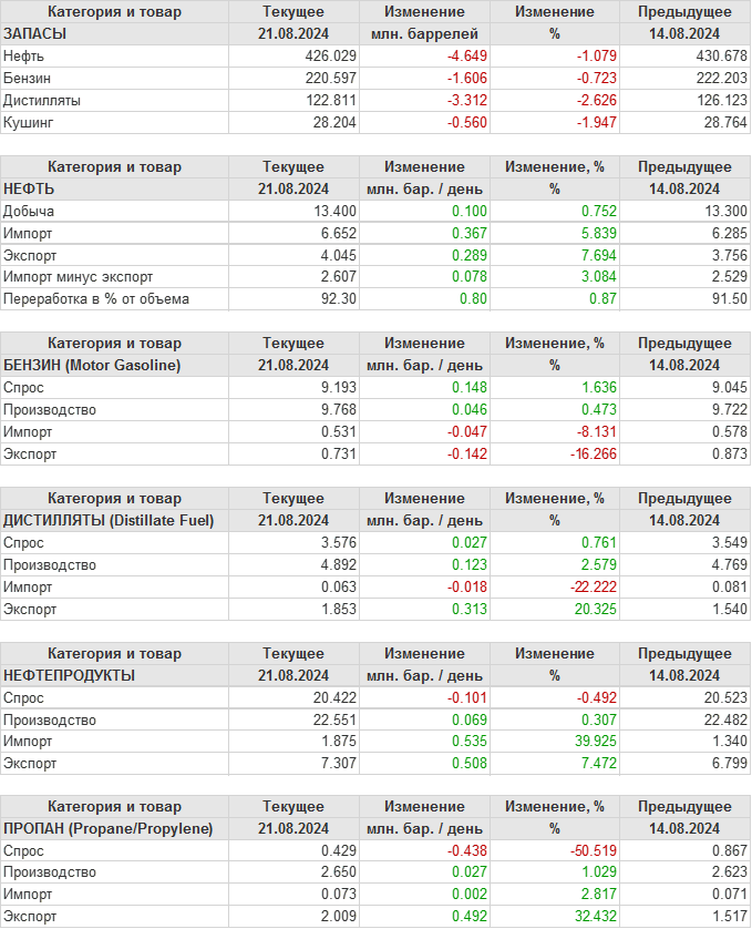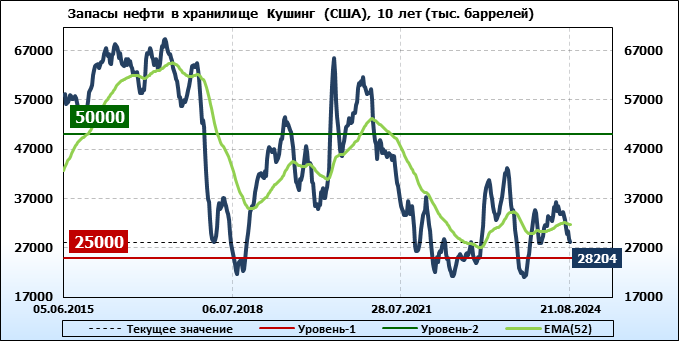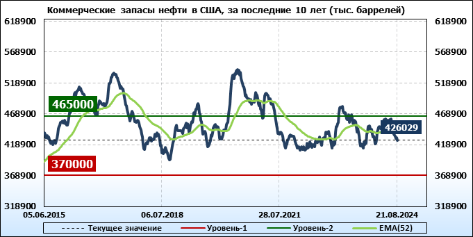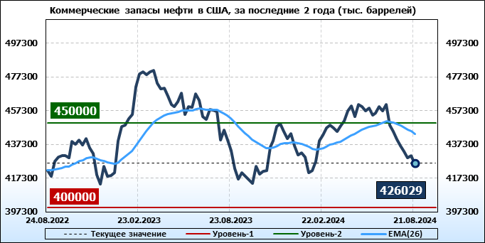 EIA. Коммерческие запасы нефти в США на 21 августа 2024