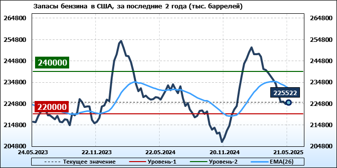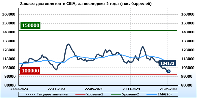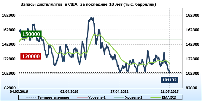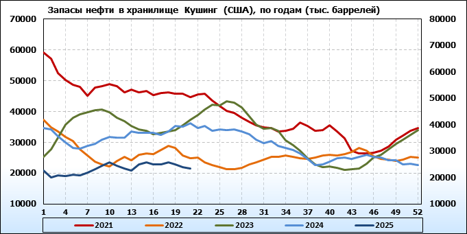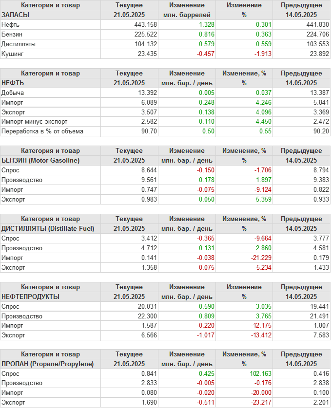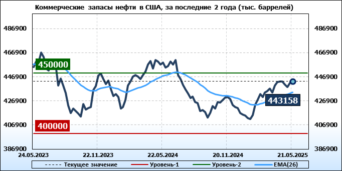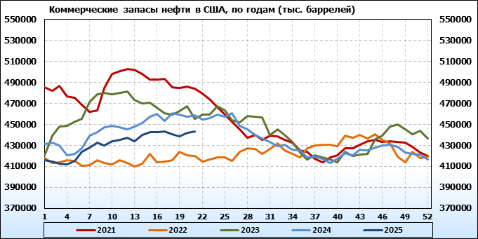 EIA. Коммерческие запасы нефти в США на 21 мая 2025