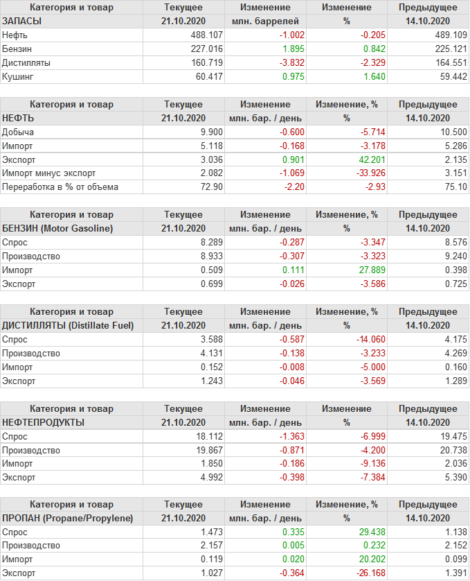 API. Изменение запасов нефти в США на 20 октября 2020