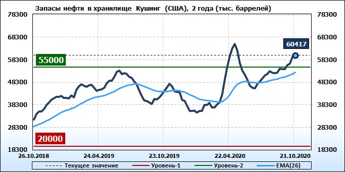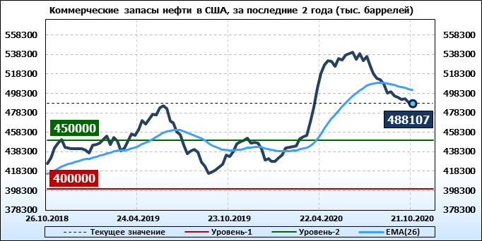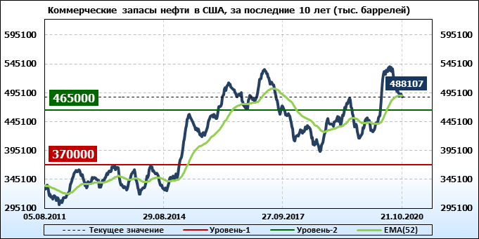 EIA. Коммерческие запасы нефти в США на 21 октября 2020