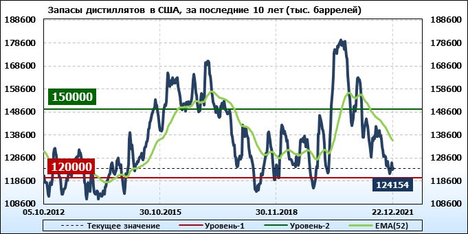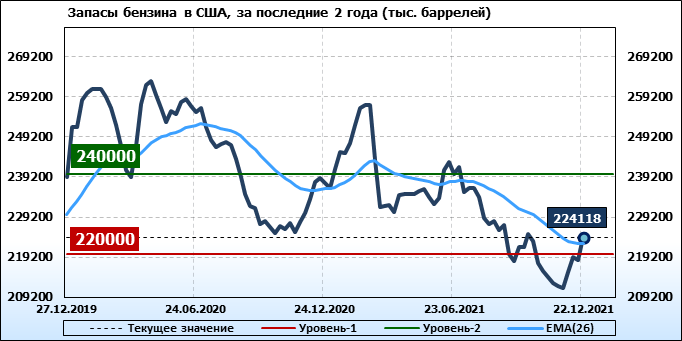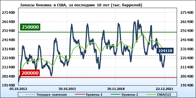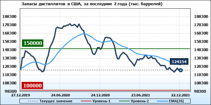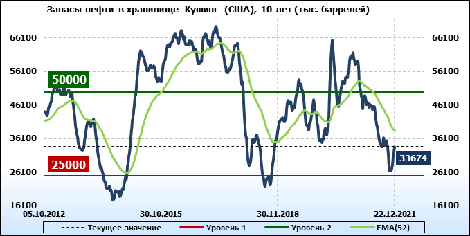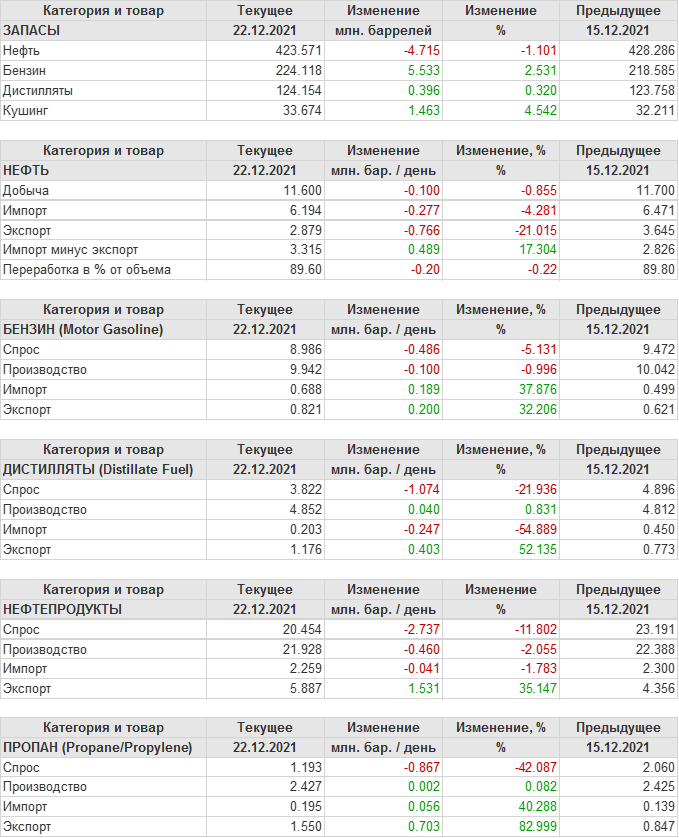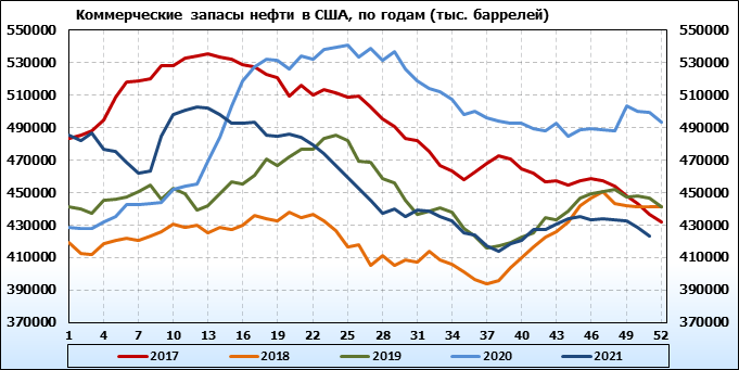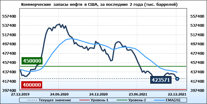 EIA. Коммерческие запасы нефти в США на 22 декабря 2021