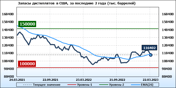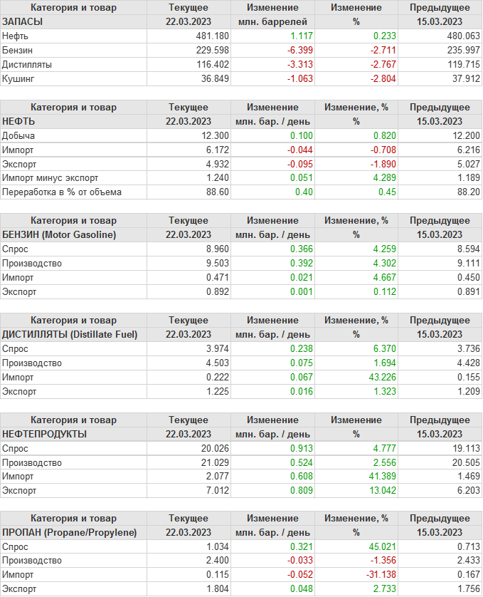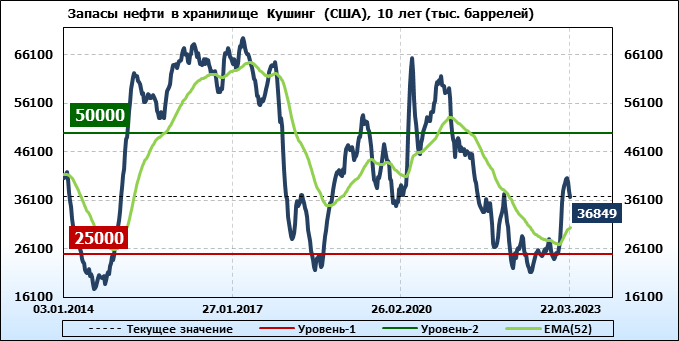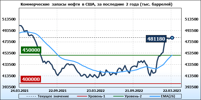 EIA. Коммерческие запасы нефти в США на 22 марта 2023