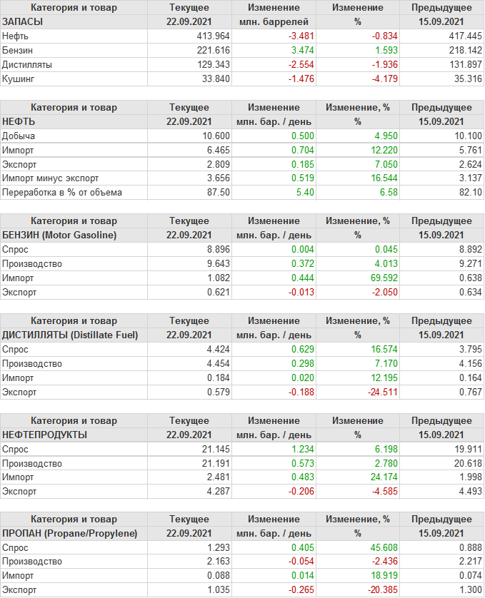 API. Изменение запасов нефти в США на 21 сентября 2021