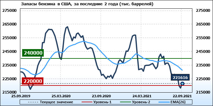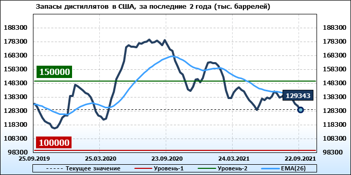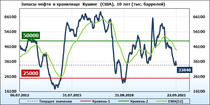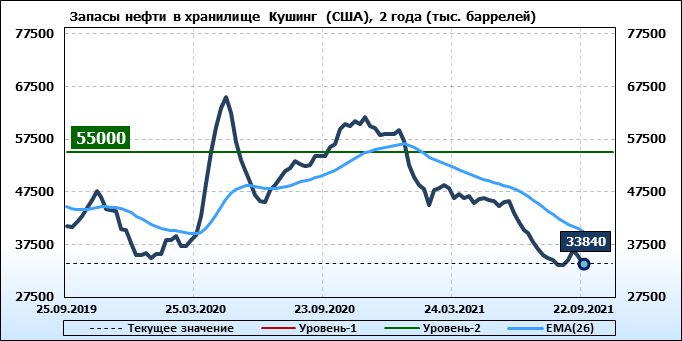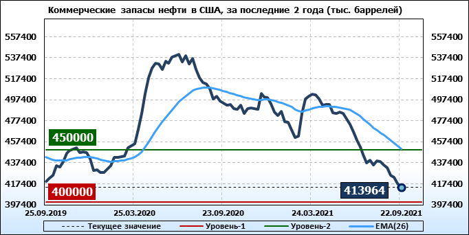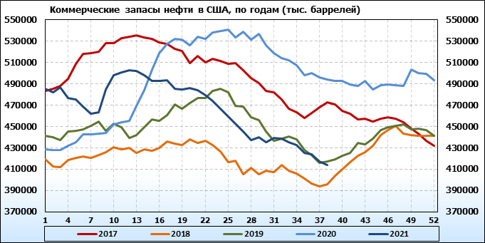 EIA. Коммерческие запасы нефти в США на 22 сентября 2021