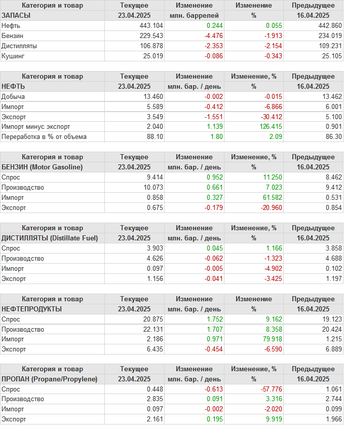 API. Изменение запасов нефти в США на 22 апреля 2025