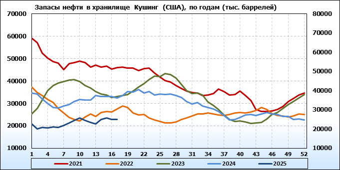 EIA. Коммерческие запасы нефти в США на 23 апреля 2025